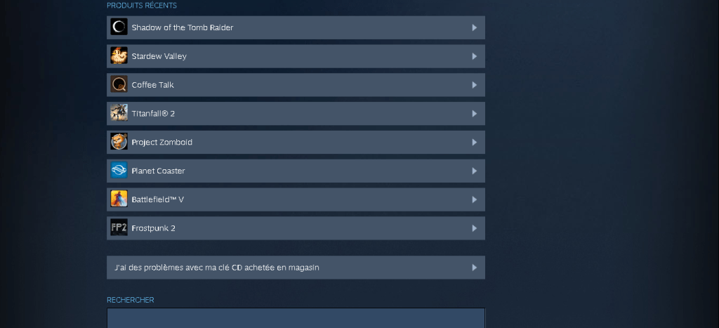 - Choisissez un jeu récemment joué ou utilisez la barre de recherche.