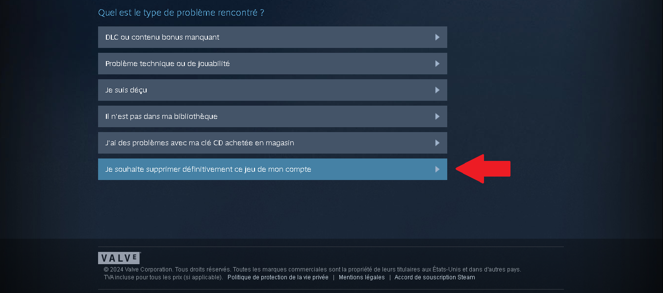 - Cliquez sur la ligne « Je souhaite supprimer définitivement ce jeu de mon compte ».